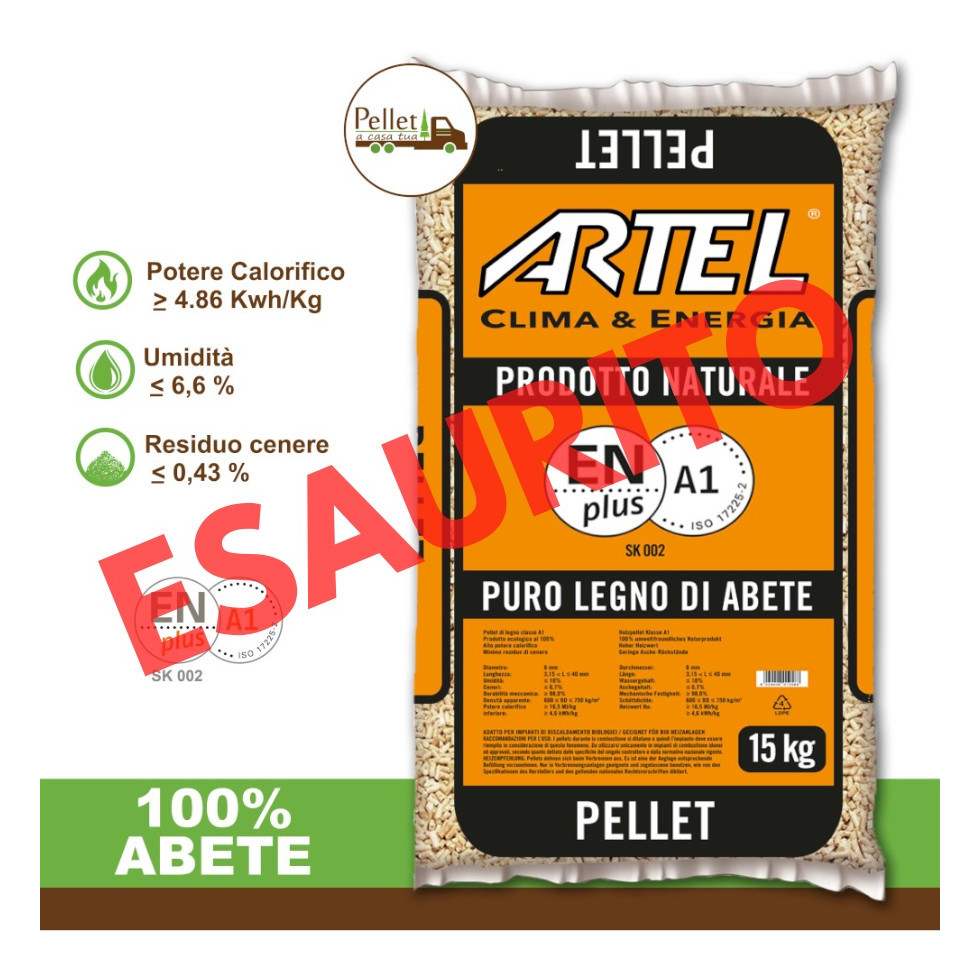 Pellet Artel consegnato al tuo domicilio nei formati 36 o 72 sacchi.